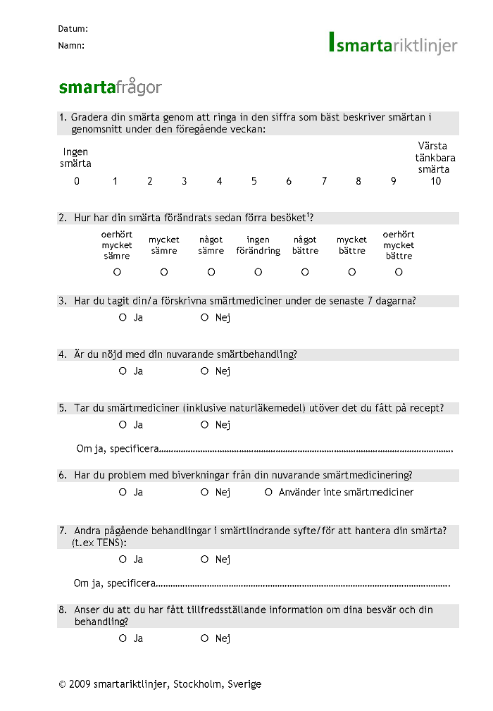 smartafrågor är ett enkelt instrument framtaget av smartariktlinjer för att underlätta bedömning och behandling av patienter med långvariga smärtproblem.